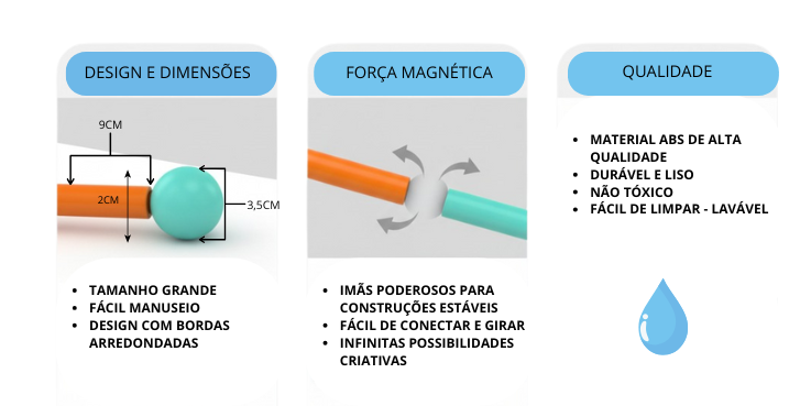 Desenvolve lógica, criatividade e perceção espacial. Ensina atração e repulsão magnética. |