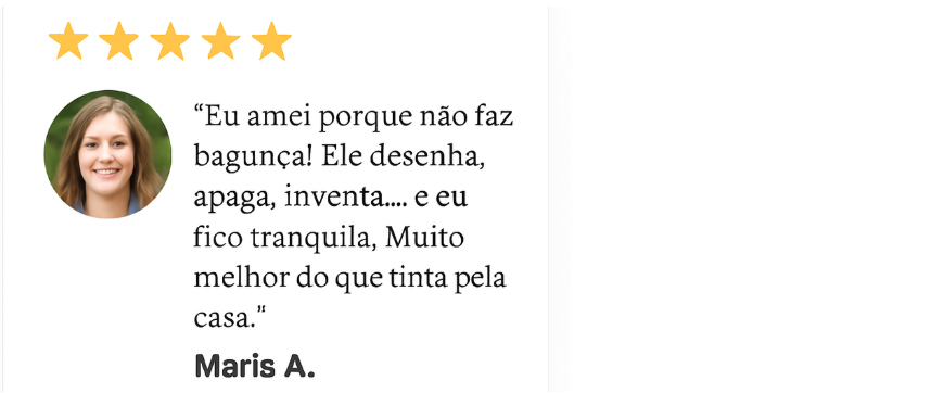 “Ajuda muito no foco! Meu filho é agitado e ficou super envolvido criando formas. Recomendo demais para quem quer sair das telas.”